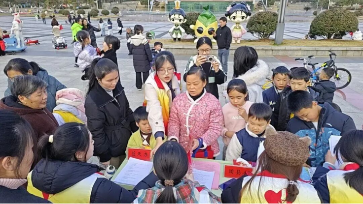 在桃江县金盆广场,青年志愿者们设置有奖知识竞答环节,题目涵盖禁燃禁放相关法规、安全隐患防范及未成年人保护等内容,累计发放各类宣传礼品300余份,吸引了上百名居民踊跃参与。