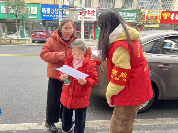 在东坪完小学校门口,10余名志愿者走上街头,宣传禁燃禁放安全与环保知识,发放倡议书近100份,参与倡议签名行动超60人,切实深化辖区居民对烟花爆竹禁燃禁放政策的理解与支持。