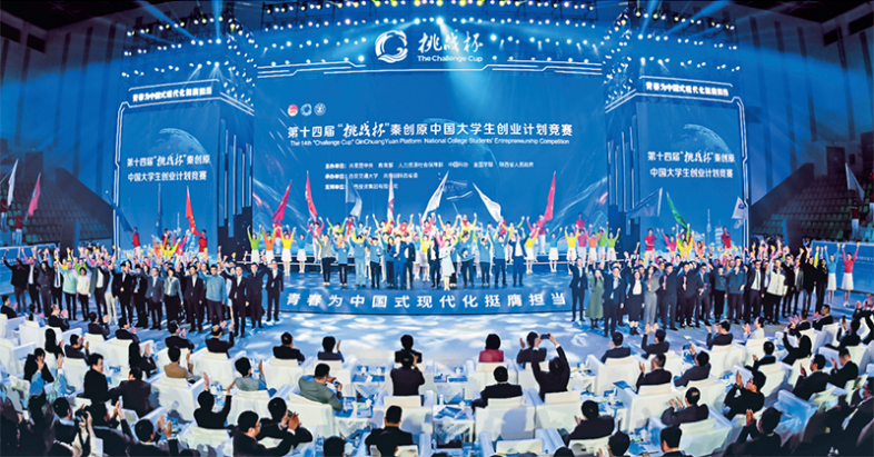 “挑战杯”中国大学生创业计划竞赛由共青团中央联合有关单位发起,自1999年举办以来,已成为国内大学生最关注的全国性创业赛事之一。图为2024年11月2日,第十四届“挑战杯”秦创原中国大学生创业计划竞赛闭幕会暨大学生青创报国汇报会在西安交通大学举行。 共青团中央供图