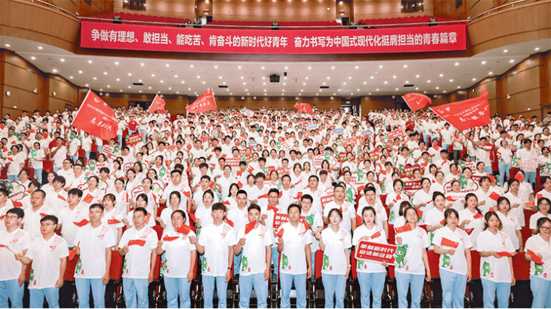 当前,以习近平同志为核心的党中央正团结带领全党全国各族人民奋力投身以中国式现代化全面推进强国建设、民族复兴伟业的宏阔征程。目标越是宏伟,任务越是艰巨,越要求我们团结成“一块坚硬的钢铁”,越需要青年一代紧跟党进行具有许多新的历史特点的伟大斗争。奋进新征程,共青团必须坚持党有号召、团有行动,高举团旗跟党走,推动中国青年运动和青年工作沿着正确政治方向前行。思想上时刻紧跟,巩固拓展学习贯彻习近平新时代中国特色社会主义思想主题教育成果,巩固深化党纪学习教育成果,扎实开展深入贯彻中央八项规定精神学习教育,完善“第一议题”学习、理论学习中心组学习等制度,持之以恒深化党的创新理论武装。政治上铸牢忠诚,严格落实党建工作责任制,办实政治要件,抓实中央巡视整改,做细政治机关建设,不断提高政治判断力、政治领悟力、政治执行力。行动上坚决落实,坚持党管青年工作原则,落实党建带团建制度机制,自觉把团的工作和建设置于党的工作全局中谋划推进,不折不扣落实党中央决策部署,在履职尽责中彰显政治担当。
